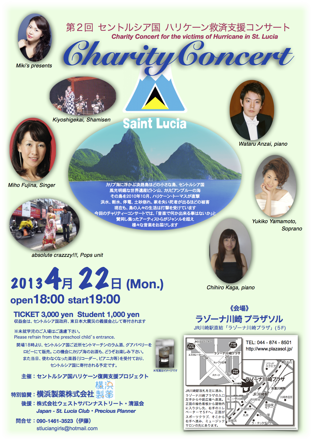 チケット代金は全てセントルシア政府、東日本大震災に寄付されます。